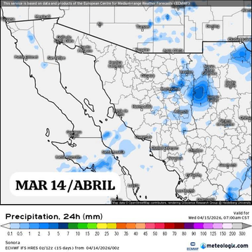 Hermosillo, Sonora a 14 de abril de 2026.- Martes basándose en la valoración y análisis de la información meteorológica en general y con base en información del Servicio Meteorológico Nacional y diferentes fuentes oficiales de los Estados Unidos, la Coordinación Estatal de Protección Civil emite el siguiente pronóstico: